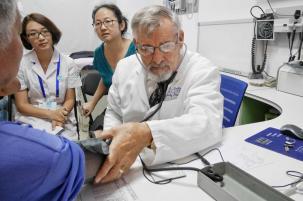 圖片來源:新京報據介紹,培訓采取現場面對面教學的方式,重點培養全科醫療基本技能、醫患溝通技巧、帶教方法、管理能力、科研能力5大核心能力,并將組織學員到國外優秀全科醫學教學基地考察。培訓結束前,將通過筆試和標準病人的實際診療能力等方式對學員進行考試,考試題目都是美國醫師認證題庫中的標準題目,學員通過考試就意味著具有與美國家庭醫生的同等水平,成績優異的學員將有機會到美國進行短期的進修學習。圖為美國醫生正在問診中國患者。