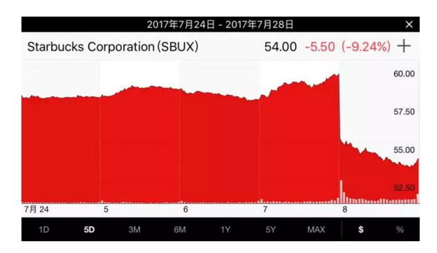 財報發布的第二天,星巴克股票便下跌了9.24%。