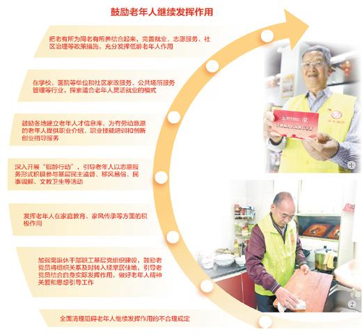 《中共中央國(guó)務(wù)院關(guān)于加強(qiáng)新時(shí)代老齡工作的意見》指出,鼓勵(lì)老年人繼續(xù)發(fā)揮作用。把老有所為同老有所養(yǎng)結(jié)合起來(lái),完善就業(yè)、志愿服務(wù)、社區(qū)治理等政策措施,充分發(fā)揮低齡老年人作用。