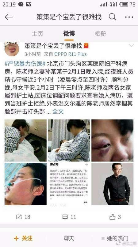 法制晚報(bào)·看法新聞?dòng)浾呖吹蕉嗝悦襟w網(wǎng)友轉(zhuǎn)發(fā)爆料稱,2018年2月2日15時(shí)許,北京市門頭溝區(qū)醫(yī)院婦產(chǎn)科,某公司流行聲樂講師陳占邦欲為凌晨4時(shí)順利分娩的妻子孫某某調(diào)整床位。陳與2名女家屬到護(hù)士站提出查看其他患者病歷,當(dāng)班護(hù)士根據(jù)規(guī)定當(dāng)即予以拒絕。
