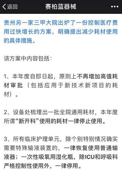早在11月初,醫(yī)療自媒體就發(fā)文介紹了當(dāng)時(shí)貴州省停用、限用大量耗材的情況。