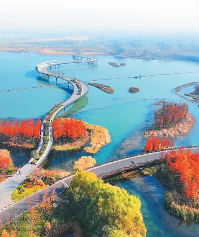 作為長三角生態(tài)綠色一體化發(fā)展示范區(qū)內(nèi)首座大型景觀步行橋,元蕩慢行橋橫跨滬蘇兩地。它不僅連接著上海青浦和江蘇吳江,還將元蕩湖兩岸的濕地景觀和環(huán)湖綠道對接,串聯(lián)起周邊豐富的生態(tài)旅游資源和人文資源。