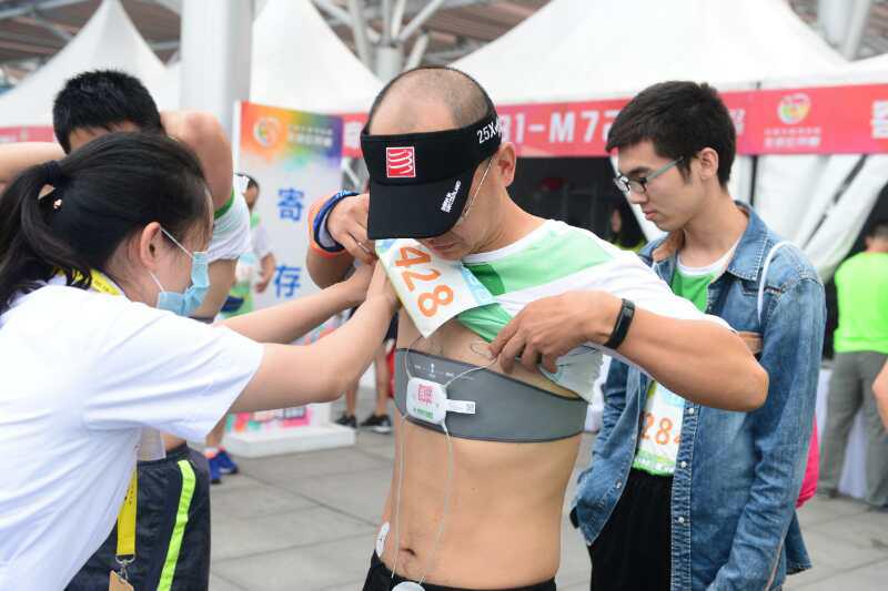 本次心電篩查的器材提供商,康乃心健康服務平臺的負責人介紹,在此前的賽事中不曾有過進行心電篩查的案例,這在全國范圍內尚屬首次,“因為以往醫用的心電篩查器械太大,拉到現場來,成本太高;另外醫用的器械做完檢查之后還要人工讀圖,時間比較長,不如這次使用的產品方便。”