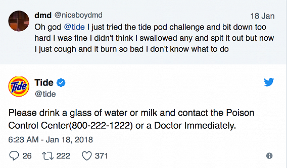 此外,社交平臺上寶潔還積極回應有關“汰漬挑戰”的發言,告誡食用者要喝水或喝牛奶緩解不適,并聯系中毒控制中心,立即就醫。并再次強調,“我們的產品絕不可食用”。