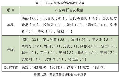 2016年,國家食品安全監督抽檢乳制品樣品3318批次,其中合格產品3303批次,合格率99.5%。進口乳制品中,共有來自19個國家的10類154 批次產品不符合中國國家標準,被退貨或銷毀。不合格原因主要包括霉菌超標、大腸菌群超標、超范圍使用食品添加劑、超過保質期、包裝標簽不合格等質量和食品安全問題。