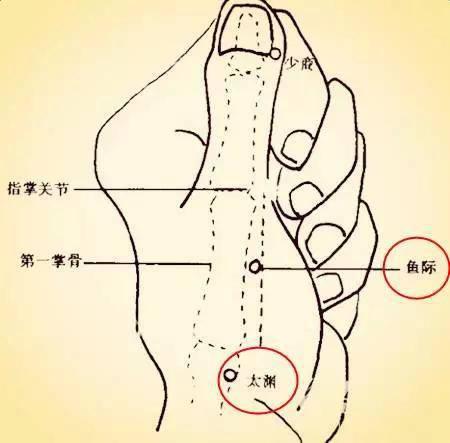 如果效果不佳,再按壓魚際穴、太淵穴各一分鐘喘即止。