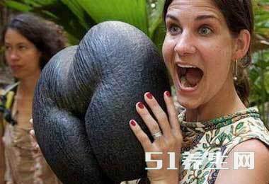 其實這種水果就是海椰子,那你應(yīng)該就知道這種水果是哪個國家的國寶了吧,其實就是舍塞爾的國寶,這種水果的長相還真是讓人說不出的感覺呢,你們吃過那么多的水果,這樣的水果看見還真是無從下口呢。