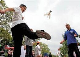 另外,踢毽子的運動量可隨意控制,可按照自己的體能來確定運動量。其踢法多種多樣,有單人踢、雙人踢、多人踢;有正踢、反踢、交叉踢等。踢毽子寓游戲于運動之中,只要玩得開心,合理掌握運動量,就能夠達到強身健體的目的。