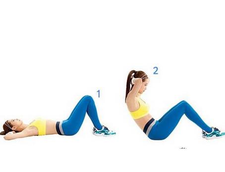 每日3-5組,每組30個,仰臥在地板上,下背部緊貼地面。雙手放在頭側(cè),手臂打開。雙腿平放在地上并屈膝。下頦向胸前微收,收縮腹肌,呼氣抬起上身,下背部不能離地,保持2秒鐘,然后慢慢回到開始姿勢。