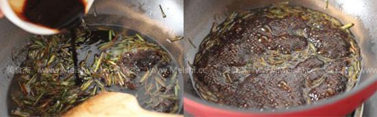 4.待鍋中的蔥段變黃,倒入細砂糖