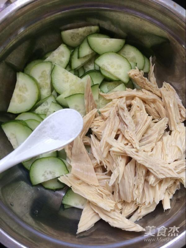 將焯好的腐竹撈出,放入涼水中過一下涼水。