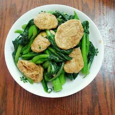 再將魚餅置入鍋中一同翻炒。