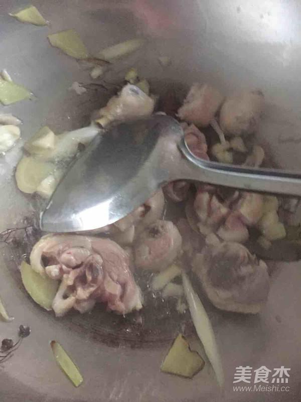 倒入提前焯好的琵琶腿 翻炒