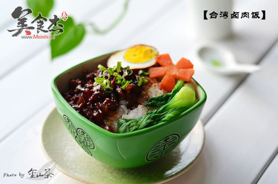 10. 燒開水,加點鹽和芝麻油,將油菜和胡蘿卜片燙熟,跟鹵肉、雞蛋一起放在米飯上拌勻食用