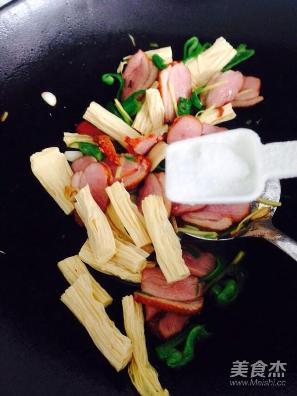 放入豆筋,炒至青椒變軟