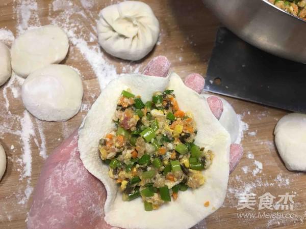 蒜苔雞蛋蝦米五花肉海帶包子的做法-咸鮮味蒸菜譜