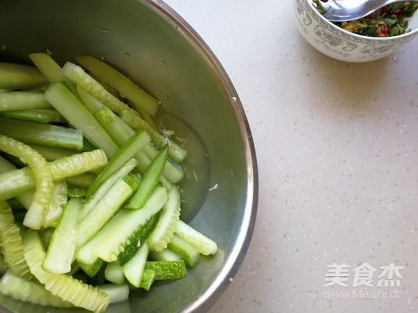 黃瓜切條放適量鹽腌制一個小時以上。
