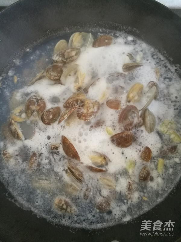水開后倒入洗好的蛤蜊煮至蛤蜊全部張開即可。