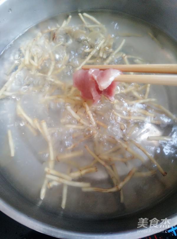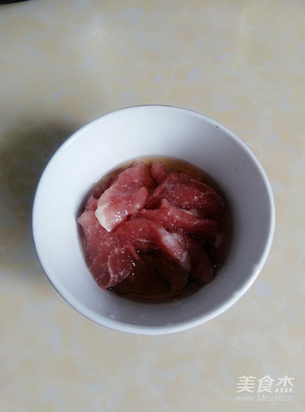 瘦肉洗凈切片,放入油、鹽、料酒攪拌均勻,腌制片刻
