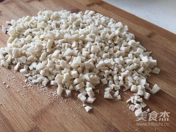 浸泡好的饃擠去水分,揉碎,與切好的小饃塊混合。