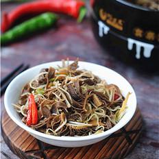 4.鍋燒熱,將毛肚倒進鍋里,慢慢翻炒