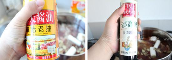 6.放入少許老抽和生抽,大火燒開鍋,小火燉牛肉
