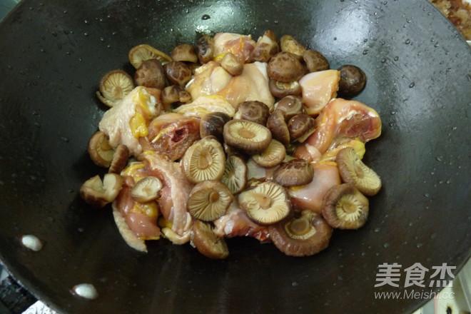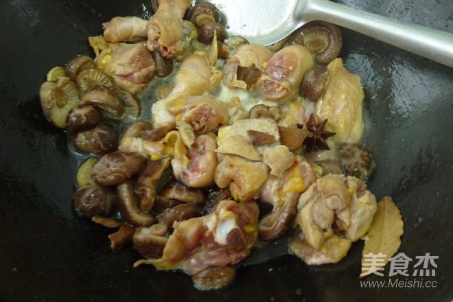把香菇雞腿燒透,入味,下蔥段,關(guān)火