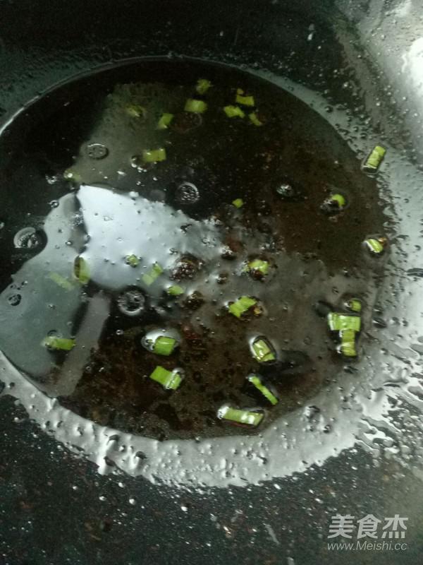 蔥花備用。炒鍋熱油,放蔥段,小火,差不多扁了就撈出來
