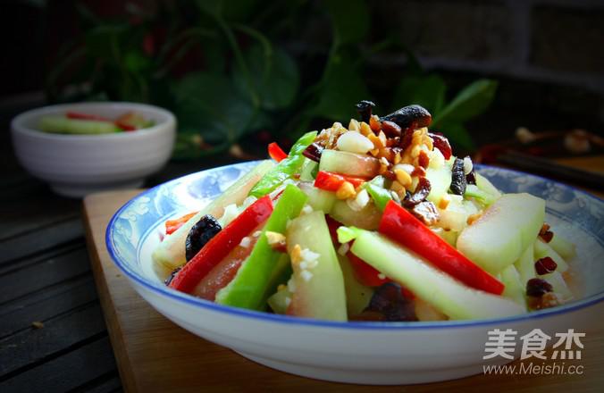 西瓜皮去掉外面的翠衣,刮去少許紅瓤
