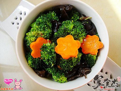 9.將蔥油倒入西蘭花中,加少許鹽、雞精調味即可。如果不喜歡蔥油味,可以放些蒜蓉,味道更經典