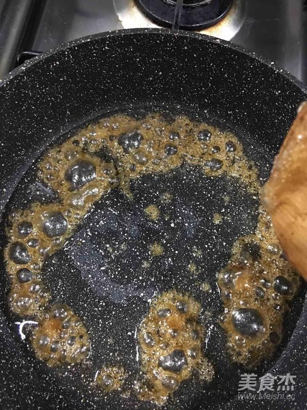鍋里放油,小火把糖炒化,