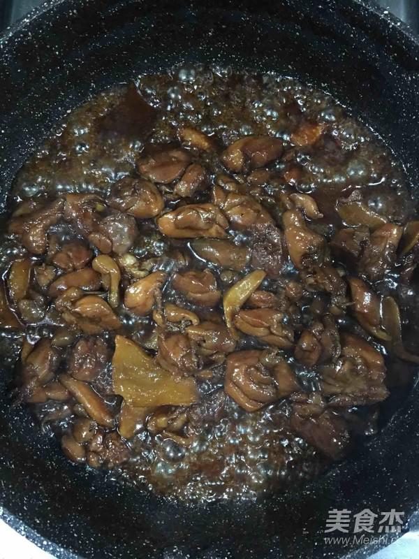 糖炒化之后放姜,炒出香味,放入腌好的雞腿