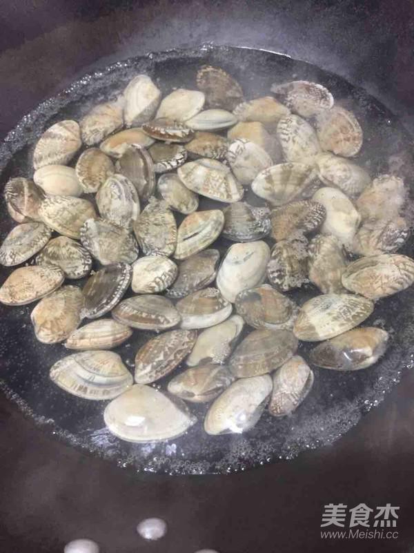 7.開火放水,把花甲淖水,水開之后都開口之后撈出,備用。