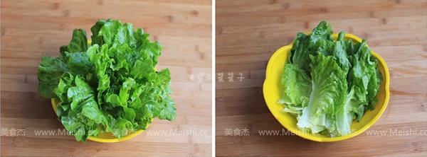 1.生菜清洗干凈掰開,每片對半撕開,較大的葉片可以再撕一下