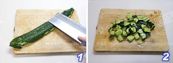 1.黃瓜用牙刷將表皮刷洗干凈,用刀背將黃瓜拍扁,也不需要拍的太碎了