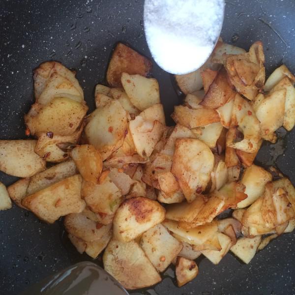 放入土豆片進行翻炒。