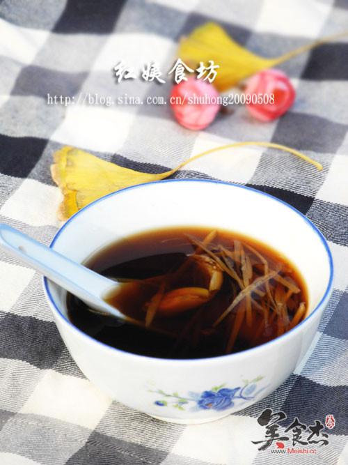 5.鍋中水燒開后,放入紅糖,用勺子攪拌均勻,大火煮2分鐘