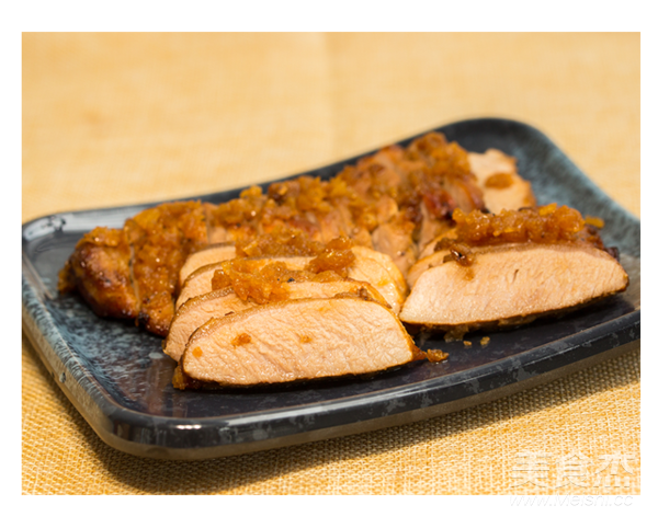 溫度設置為200℃,上下管、烤30分鐘。滿15分鐘翻轉一次,翻轉的時候在肉的表面再鋪上梨蓉