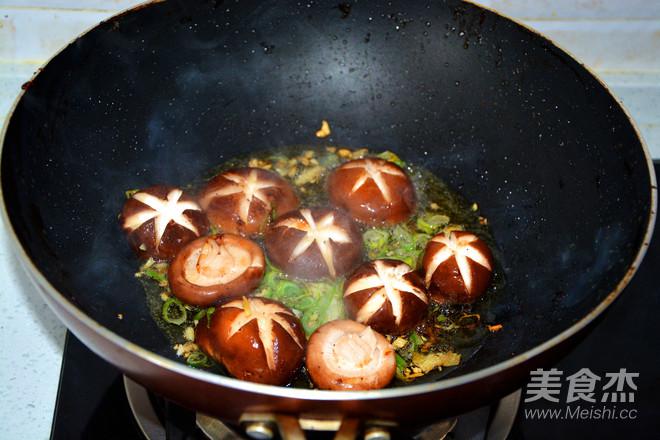 8.燒至3分鐘左右,待湯汁濃稠,將湯汁澆在油菜葉子上面,香菇擺在上面即可。