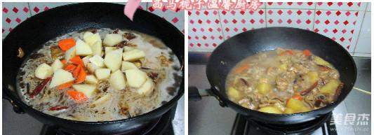 6.加入土豆和胡蘿卜塊,燒開后,轉小火燜制土豆熟透