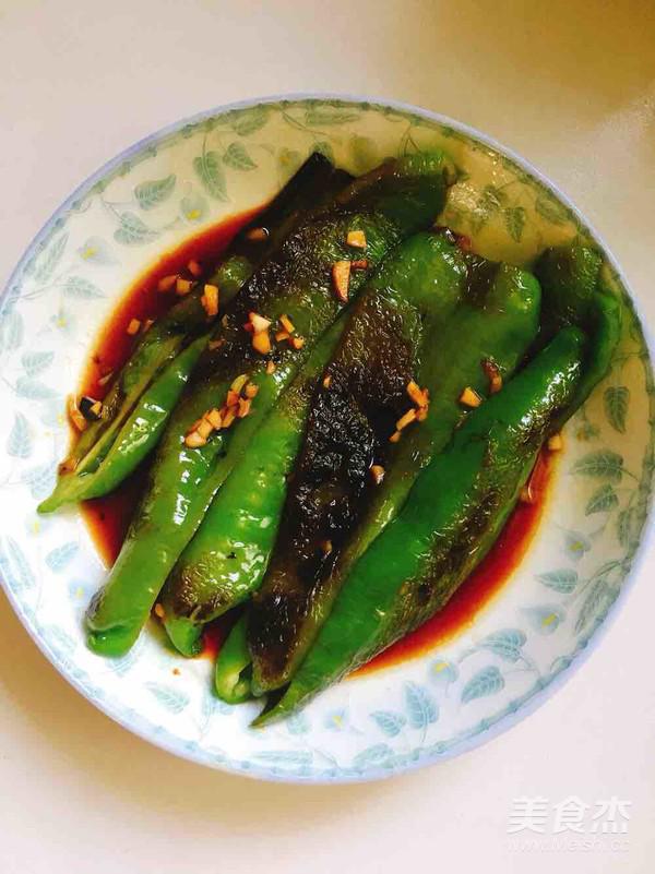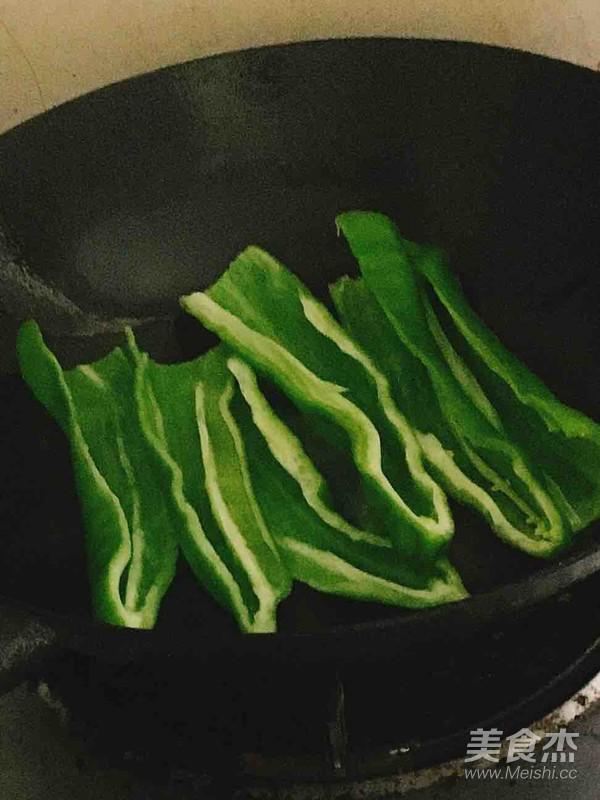 青椒皮起皺就可以盛出,我們家喜歡焦一些的,就多煎了會(huì)