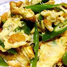 辣椒和蔥一起下鍋,翻炒10秒,加雞蛋液;
