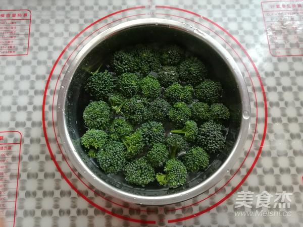 8.西蘭花分成小朵,用水泡幾分鐘備用