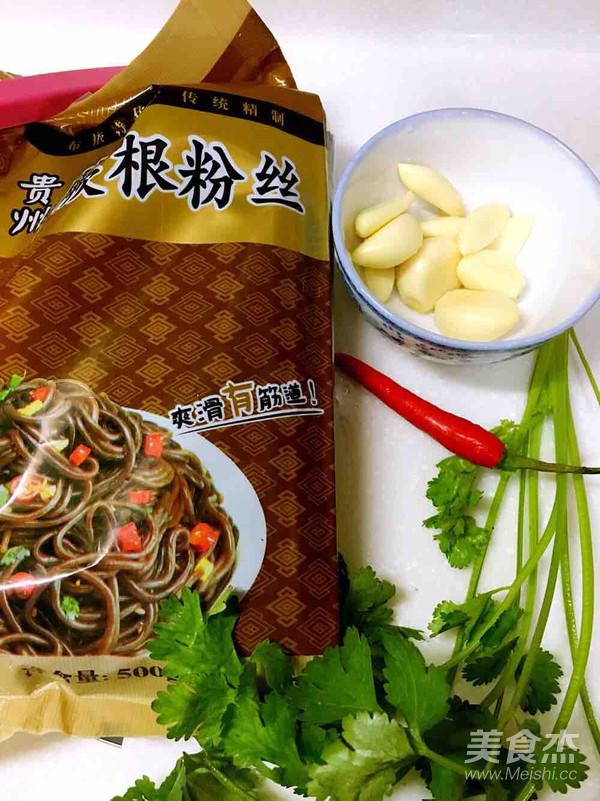 把冷藏中的蕨根粉放入調好的醬汁中,再依次放入芫茜,大蒜泥,剁椒和指天椒即可。