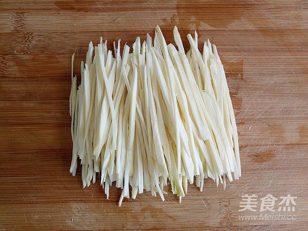 2.茭白洗干凈用刀斜著切成片再切成絲。