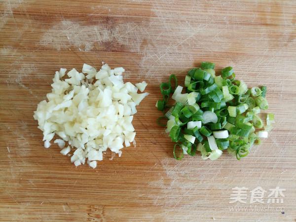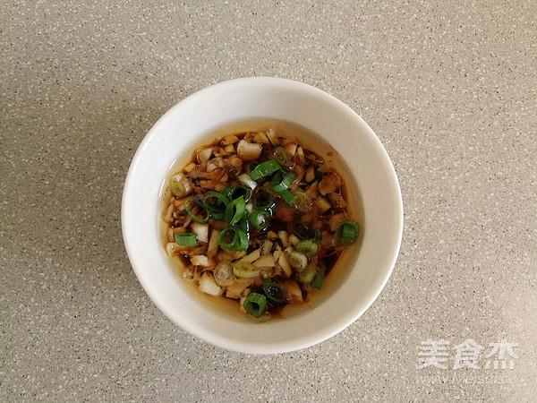 4.將蒜末、蔥末、鹽、生抽、白糖、醋、香油、雞粉放入碗中調(diào)成汁。