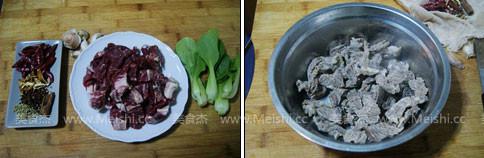 2.將牛上腦肉浸泡若干小時(shí),中途換清水,泡凈血水,冷水入鍋焯水后備用