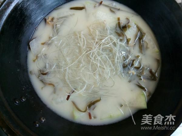 海米要提前浸泡好,入油鍋后一定要炒至金黃色(才能煮成奶白色)再加入海帶。