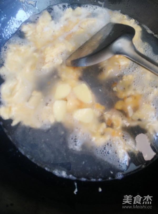 熱鍋倒油燒開,倒入雞蛋液劃散