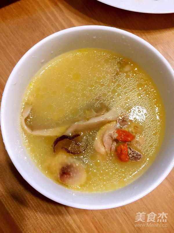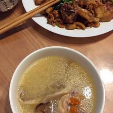 雞大火燒開(kāi)大概5分鐘后,放平菇,再小火燉大概40分鐘左右